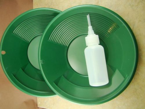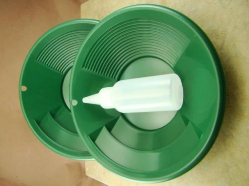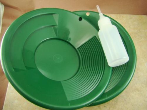 Lot of 3-12" Green Gold Pans w/ Bottle Snuffer-Panning Kit-Prospecting-Mining