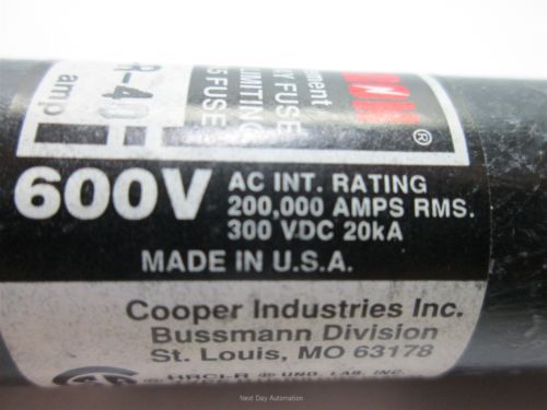 Lot of 4 Bussmann FRS-R-6-1/4 Time-Delay Fuses, Dual Element 600VAC 300VDC 6.25A