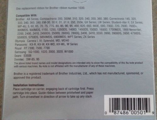 NEW Brother 1230 BLACK Correctable 1030 Film Typewriter Ribbons, Pack Of 2
