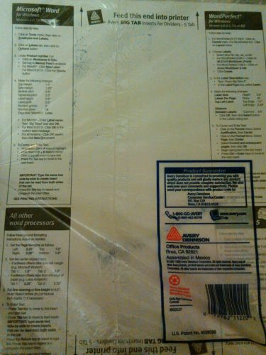 LOT OF 4 Avery WorkSaver Big Tab Insertable Tab Divider - Print-on - 8/ Set
