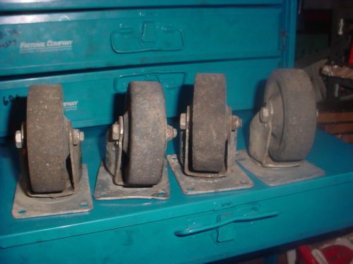 Set of 4 HEAVY DUTY Caster wheels 6" 4X2 HARD RUBBER WHEELS, 4 1/2X4 PLATES