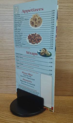 Retail Clear Acrylic 3-Sided Sign Holder with Black Revolving Base 5.5"W x 8.5"H