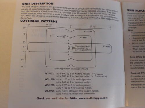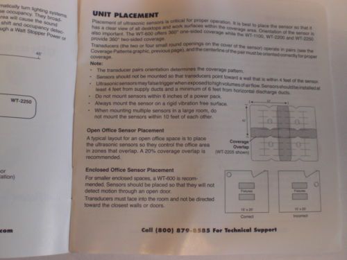 Watt Stoppers WT-1100 White 24VDC Ultrasonic Occupancy Sensors