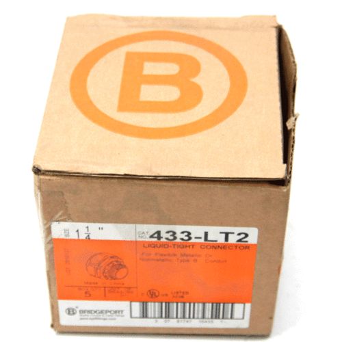 Lot of 6 NEW Bridgeport 435-LT2 Liquid-Tight Straight Diecast Connector 2"