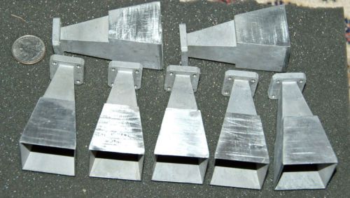 “The horns are in good overall physical condition. The edges of the openings are very thin and while they may not be perfect due to handling, etc.; they are quite acceptable and useful. – Please look at the pictures and BID ACCORDINGLY. Square Microwave Horns with what we have been told is a modified (Special) WR-51 Waveguide flange (15 – 22GHz). Please note that I am selling these items as USED, STRICTLY AS-IS.” |