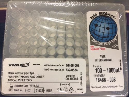 | “There is a crack on one box as seen in photo however plastic still sealed.96 Hinged Rack per Box - 768 Total Pipet tips in all.Expire Date: 04-2011” |