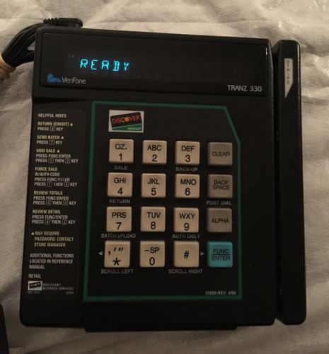 | “This listing is for a lot of six VeriFone Credit Card Terminals Readers - 5 TRANZ 330 & 1 TRANZ 380. The Readers consist of five VeriFone TRANZ 330's and one TRANZ 380. Also included with this listing are six power cords. I have not personally tested these readers, they were retired working, and am selling them as is. Cosmetically, these six VeriFone Credit Card Terminals Readers are in very good condition. While I am selling these six VeriFone Credit Card Terminals Readers as is, their very good cosmetic condition, sellers reputation, is consistent with equipment that was retired in working condition.” |