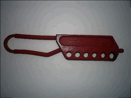 Product Description: Manufactured by mild stainless steel with highly visible vinyl coating. Used to provide a group lockout system on an installed devices while maintenance and prevention of power devices. Available with six holes so that at a time more than one authorized person can lock the perticular device.