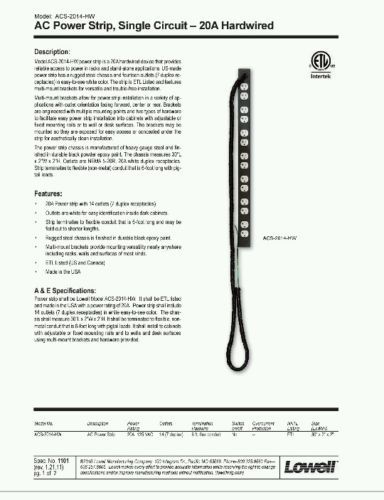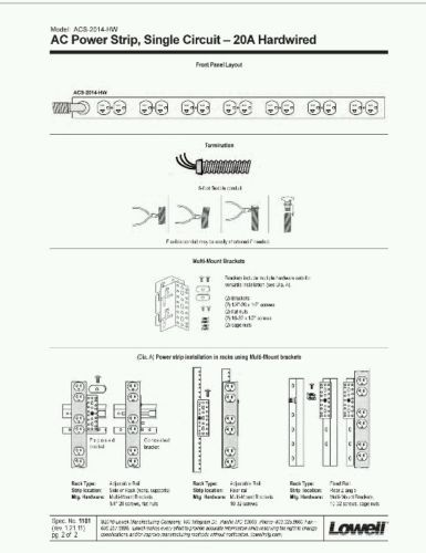 | MPN | ACS-2014-HW Power Strip is a 20A Hardwired | ||