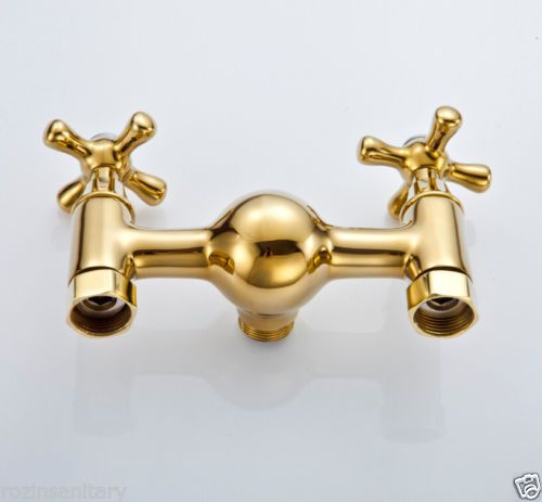 Golden Luxury Wall Mounted Shower Bath Faucet Set Dual Handles & Handheld Shower