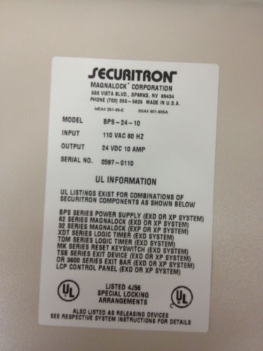 SECURITRON ASSA ABLOY BPS 1 AMP POWER SUPPLY