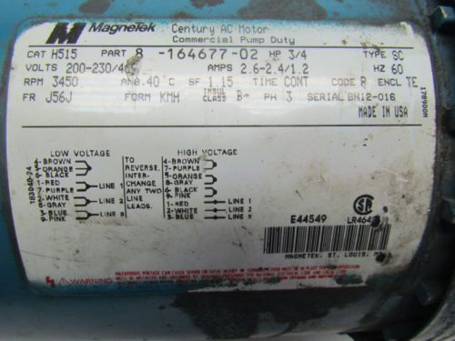 Leland Faraday M-670E 3PH 3/4Hp Electric Motor 1725 RPM 208-230/460V 56 Frame