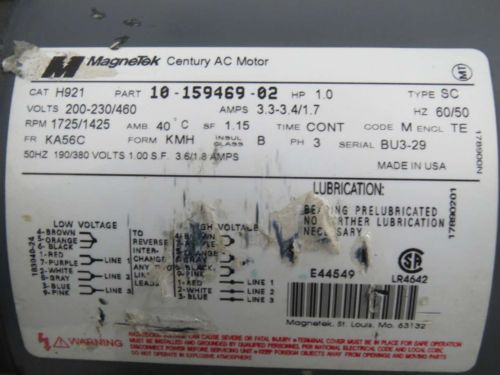CENTURY 8-176387-01 MAGNETEK 1HP 575V-AC 1075RPM N56Y 1PH ELECTRIC MOTOR B350339