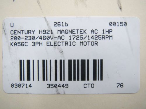 MAGNETEK 8-176387 CENTURY AC 1HP 575V-AC 1075RPM N56Y 1PH ELECTRIC MOTOR B350459