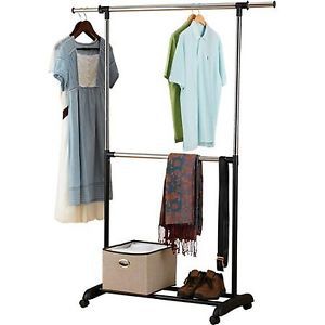 Adjustable Chrome Heavy Duty Rolling Clothing Garment Rail Rack Clothes Bar Hang