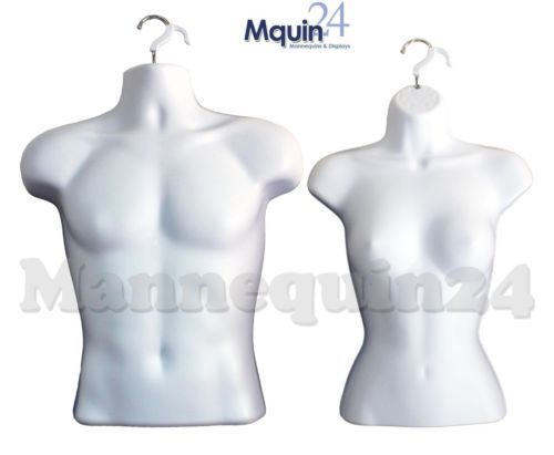2 Mannequins Man + Woman Body Dress Form White Male + Female Clothing Display