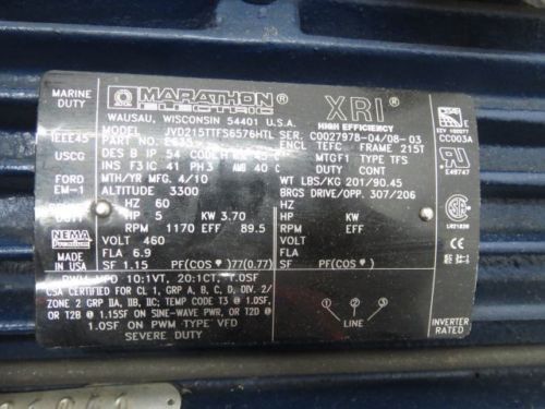 MARATHON 184TTFS8001AP-L AC 5HP 460V-AC 3480RPM 184T 3PH ELECTRIC MOTOR B238883