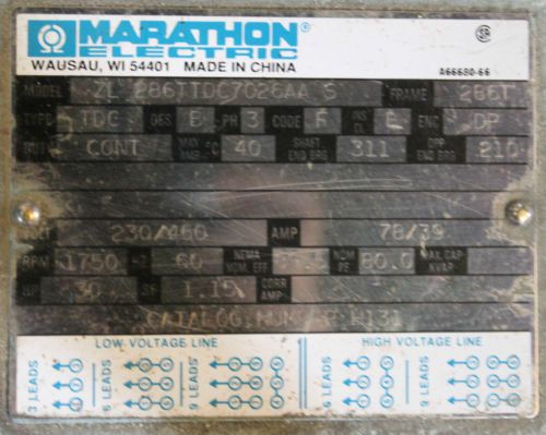 MARATHON ELECTRIC MOTOR EL213TTGS4028DBL THREE PHASE 7.5 HP 1760 RPM <199EE2