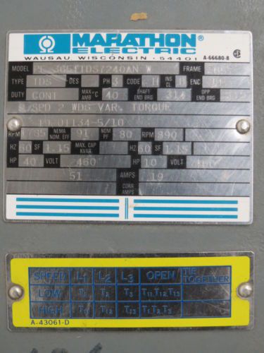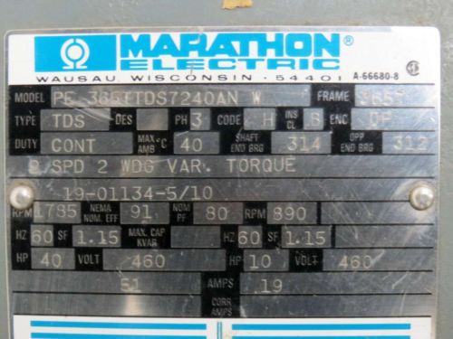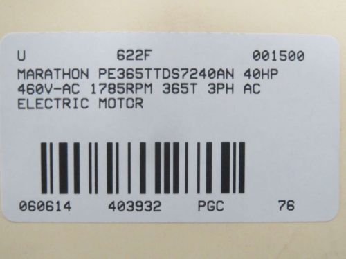 MARATHON MOTOR 40 HP 1800 RPM 324T FRAME 230/460 VOLTAGE ODP