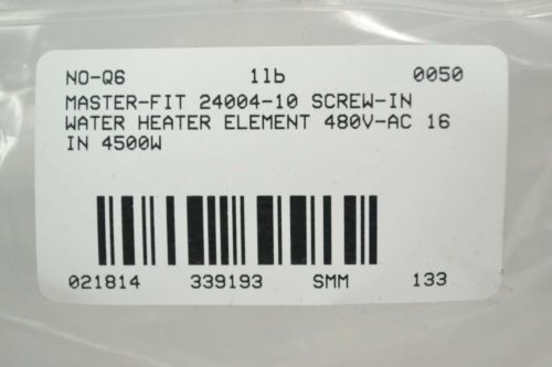 NEW MASTER-FIT 24004-9 SCREW-IN WATER HEATER ELEMENT 480V-AC 15 IN 4000W B339186