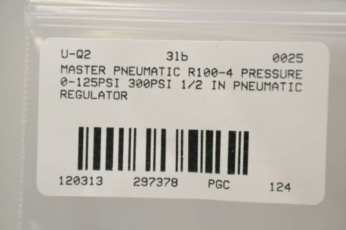 MASTER PNEUMATIC R100-4 PRESSURE 0-125PSI 300PSI 1/2 IN REGULATOR B297382