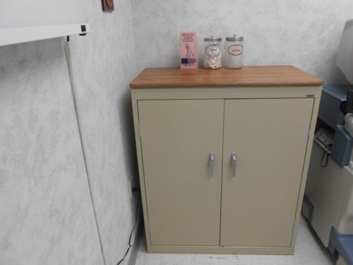 1960's VINTAGE MEDICAL CABINET custom made STEEL GLASS light blue doctor dental