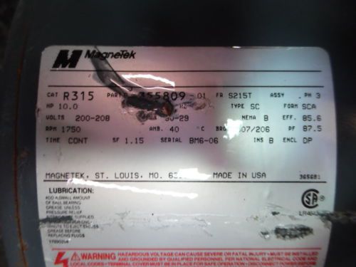US 7.5 HP UNIMOUNT 125 MOTOR, MODEL#B077A, RPM 3510, FR 213JM, 208-230/460V,USED