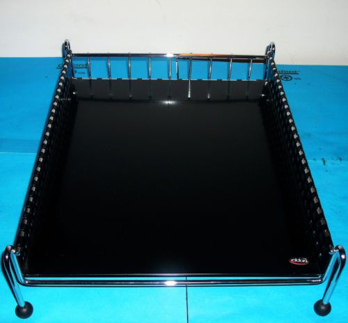 ROLODEX DESKTOP DOCUMENT TRAY LETTER SIZE METAL BLACK W/ SILVER TRIM RUBBER FEET