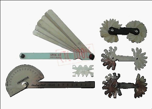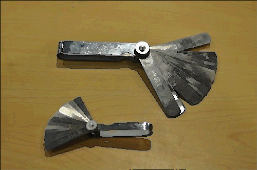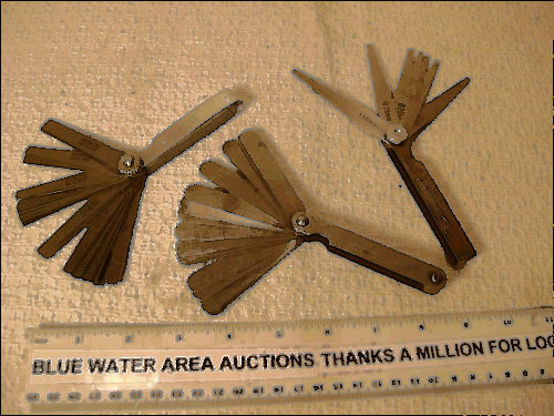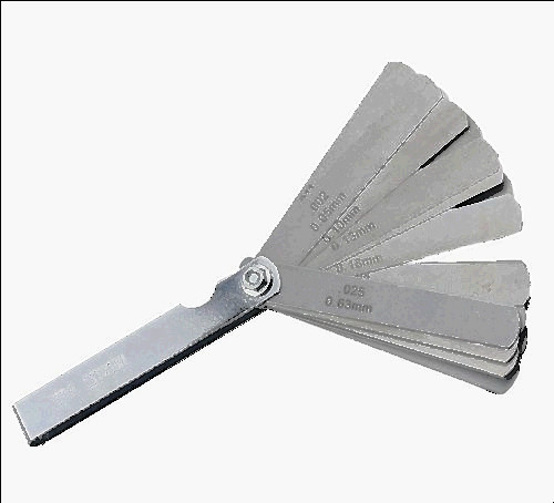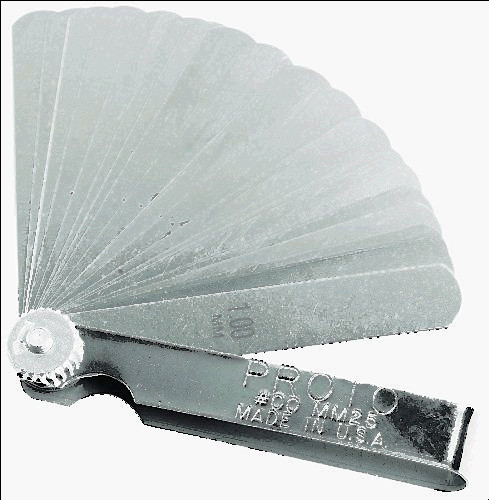 GS-3 Combination Feeler Gauge Set Thickness: .002-.025 Number of Blades: 22 Overall length: 5" 10 blades of 3"x1/2" containing: .002, .003, .004, .005, .006, .007, .008, .010, .013, .015 12 blades of 1-3/4"x1/4" containing: .011, .012, .013, .014, .015, .016, .017, .018, .019, .020, .022, .025 Both decimal and equivalent metric size etched in each blade. Gauges supplied in holder with knurled lock-nut which allows the user to select the required blade size and lock it into position.