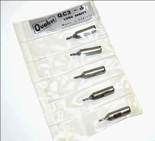 THESE DOUBLE ENDED TOOLS ARE SOLID MICRO GRAIN CARBIDE. THESE ARE 2 FLUTE TOOLS WITH A 3/32" DIAMETER ON AN 1/8" SHANK. THEY HAVE A 3/8" LENGTH OF CUT AND ARE 2" OVERALL IN LENGTH.
