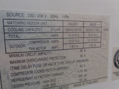 | Seller Notes | “I don't know too much about this. It appeared to be working correctly before removal. The filters need changing, only one fan on the condenser was operating. But this unit may have 2 stage cooling.” |