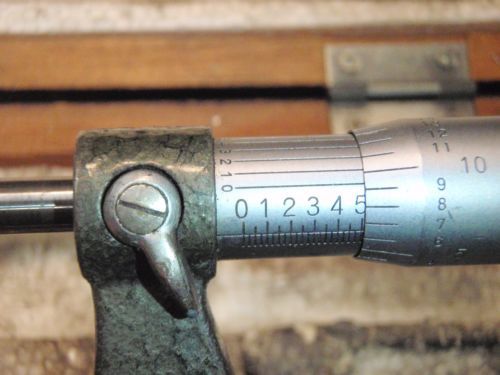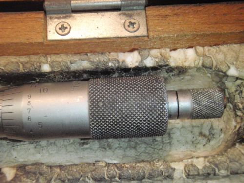 | “USED IN EXCELLENT CONDITION. COMPLETE WITH HARDENED TIPS, RATCHETING THIMBLE, LOCKING KNOB, 6" Standard, adjusting wrench and original wooden case. PLEASE SEE ALL PICTURES FOR DETAILS” |