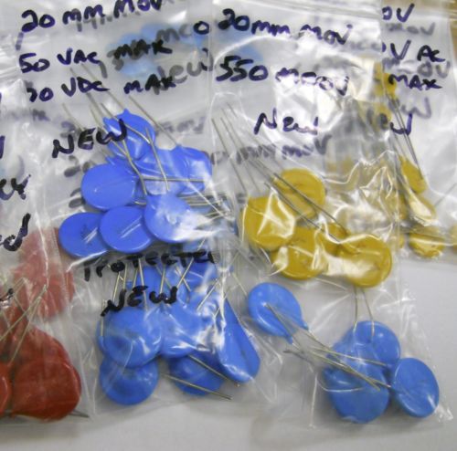 Metal Oxide Varistors, Mixed Lot of 412 MOVs, 20mm, 50 to 230 MCOV