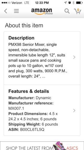 Dynamic Professional Commercial MX91 Master Immersion burr mixer with 16" shaft