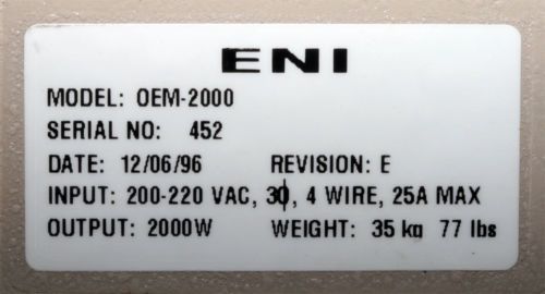 MKS ENI OEM-25B RF Power Supply: Rebuilt, 90 Day Warranty