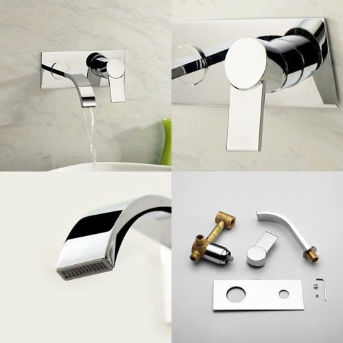 Modern LED Lighted Waterfall Wall Mount Sink Faucet Chrome Brass Free Shipping