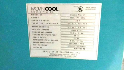 Movincool 10SFU-1 Portable Air Conditioner 10000BTU/h 484000-1221 115V NICE!