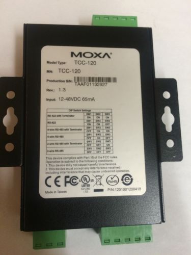 Seller Notes | “New unit never used still in packaging but in wrong cardboard box. Box notes other part number but the actual part is a Moxa TCC-120. Unit is designed to extend RS-422/485 transmission distance.” |
