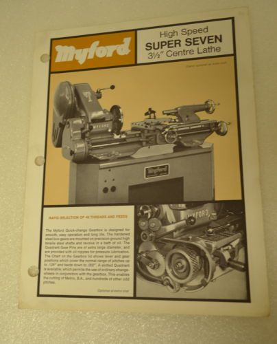 MYFORD HIGH SPEED SUPER 7 SEVEN 3 1/2" CENTER LATHE Catalog 1967 (JRW#011)