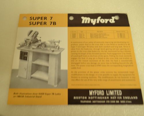 MYFORD HIGH SPEED SUPER SEVEN 3 1/2" CENTER LATHE CATALOG (JRW#015)