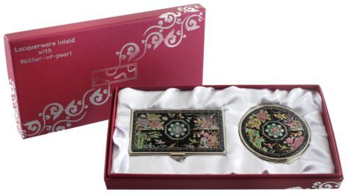 Nacre arabesque Business card holder case Makeup compact mirror gift set #23