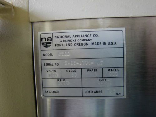 NATIONAL APPLIANCE NAPCO INCUBATOR OVEN MODEL 320
