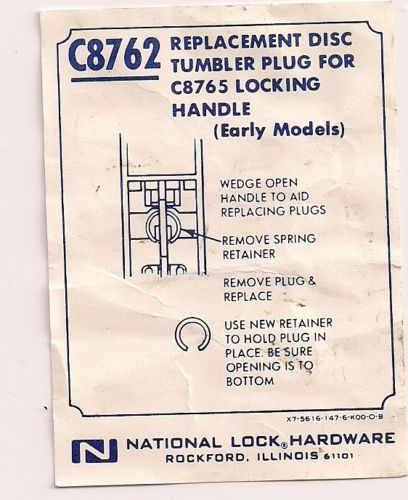 NATIONAL LOCK C8763 REPLACEMENT DISC TUMBLER PLUG FOR C8765 HANDLE