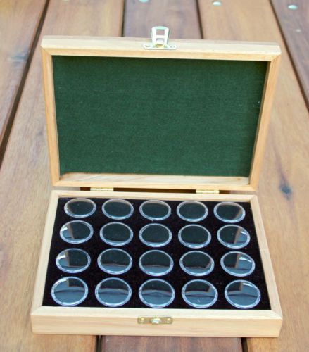 Natural Tasmania Oak Gold Nugget & Gems Display Case Handmade 20 inserts