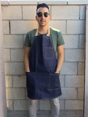 Dark Blue Denim Apron, Art, Woodwork, Pottery, Barber, Hair Stylist, Leather
