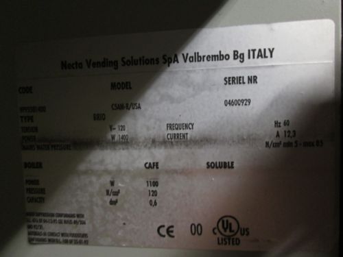 "NECTA" H.D. COMMERCIAL 8 COFFEE FLAVORS VENDING MACHINE w/COIN ACCEPTOR