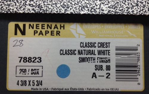 Neenah Classic Laid Finish Natural White Sub 75 A-6 Envelopes 136/250 FREE SHIP