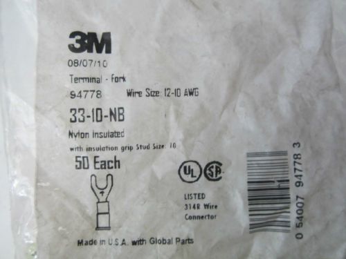 NEW 100 pack 3M 94772 Blue Nylon Fork Terminals 16-14 AWG Stud Size #10