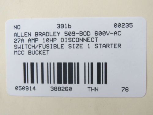 NEW ALLEN BRADLEY 505-BOD-23 27A 10HP SIZE1 REVERSING STARTER MCC BUCKET B388291