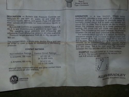 (Q5-4) 1 NEW MERCOID CONTROL DAW33-153 PRESSURE SWITCH